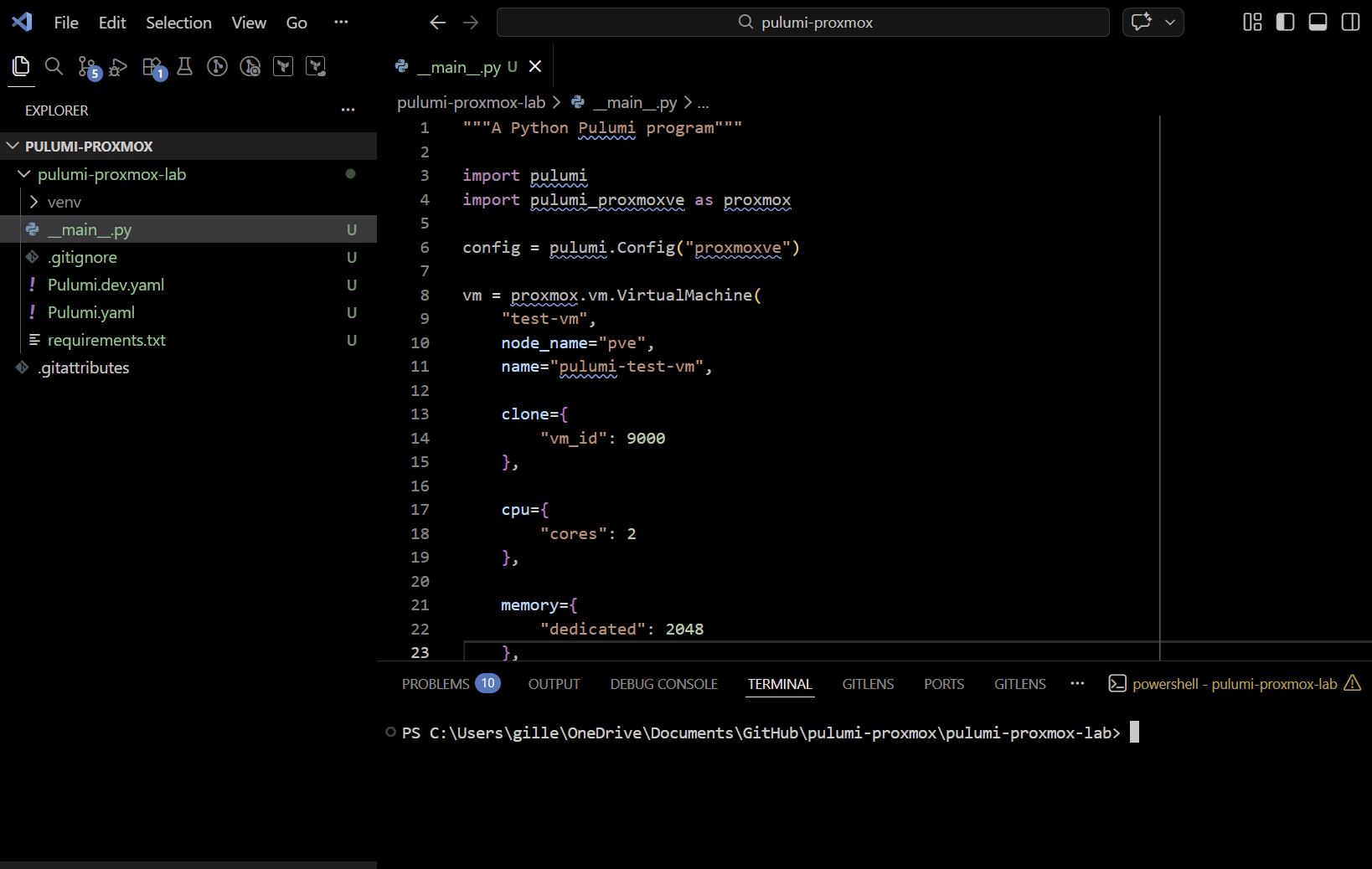└── venv/Now we can install our provider for Proxmox: