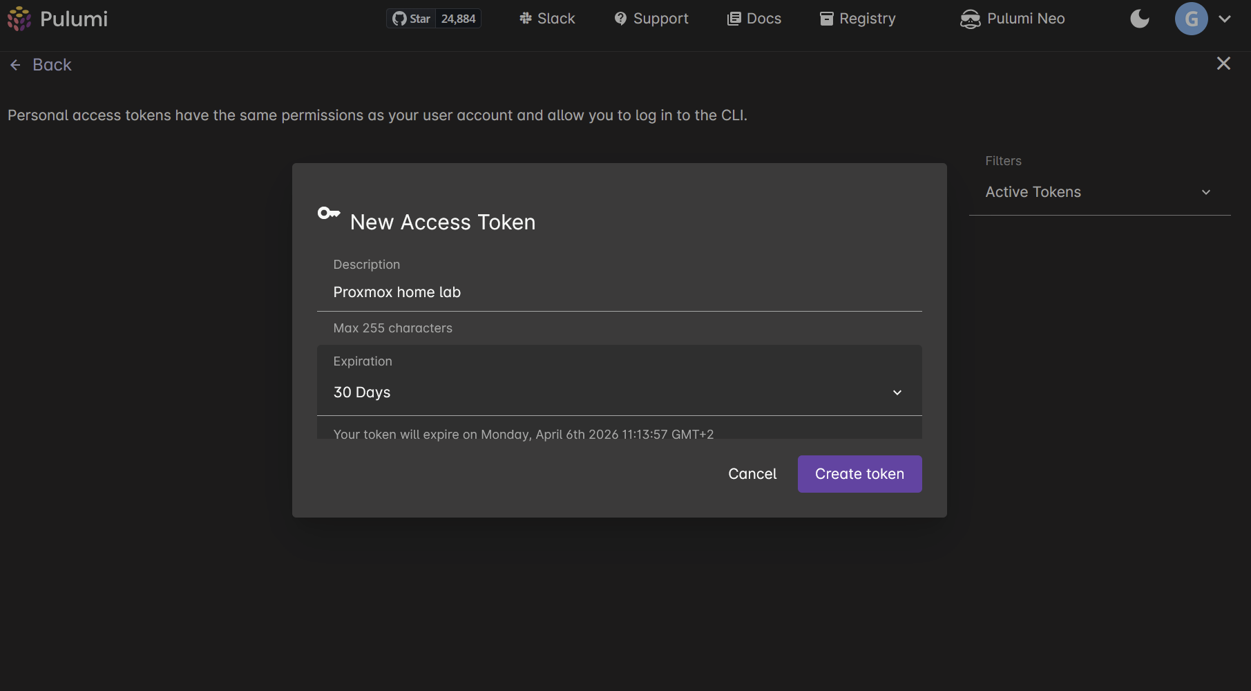 Create a token on: https://app.pulumi.com/account/tokens